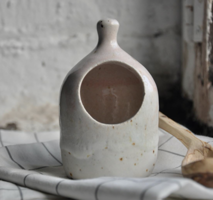 Handmade stoneware salt pig with spoon, £38 from Charlotte Storrs
