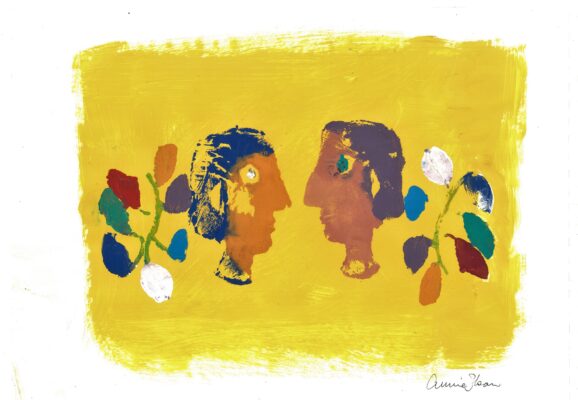 Kit Kemp, Beata Heuman and Rose Electra Harris are just some of the artists and designers who’ve been invited by Molly Mahon to contribute a picture to The Great Potato Printing Society, a special auction in aid of The Charleston Trust. Using Molly’s signature potato printing technique, the 18 contributors were given free rein over their designs – we’ve had a sneak peek and will share a few here – with vibrant, colourful results. The unique artworks are all A3 in size and will go on auction on Monday 14 September here, with all profits going to Charleston where funds are badly needed after COVID-19 and the subsequent closure of the house and cancellation of Charleston Festival. Works start at £200, and they are all one-off prints.