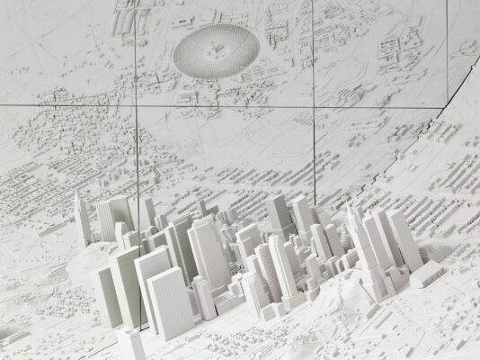 Following the success of the Anish Kapoor exhibition at the newly-restored Pitzhanger Manor comes Es Devlin’s Memory Palace, a new commission specifically for the gallery space. The work is essentially a map of memories – marking moments of major change spanning the past 78,000 years. It’s laid out as a kind of model village but instead of being geographical it’s led by ideas (or moments when our thoughts around something eg. slavery, votes for women etc. shifted), then by time (left-right reads oldest to newest), then by place. Devlin’s cartography encourages you to remember ‘the cave in the Southern Cape where the first human hands made their mark’ to ‘the railings in Parliament Square to which Pankhurst is said to have chained herself’ and onwards to ‘the steps where Greta Thunberg sat each Friday until she began to be heard’.