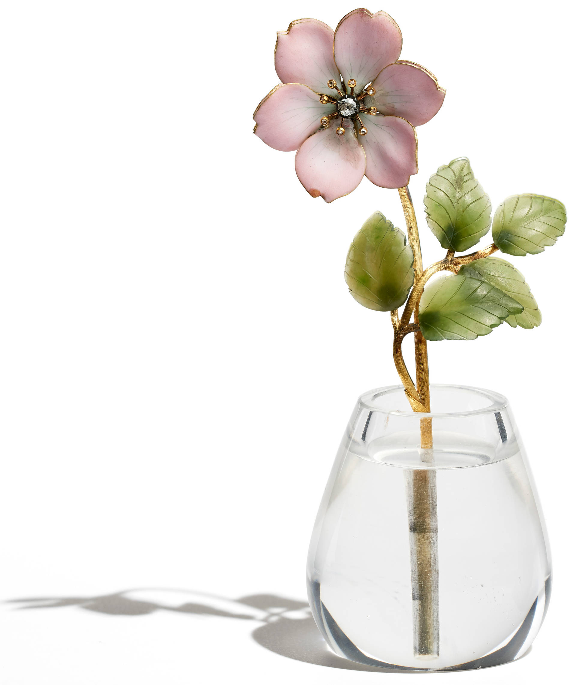 The flowers are exquisite. This rose was part of Fabergé’s stock when the London shop closed in 1917.