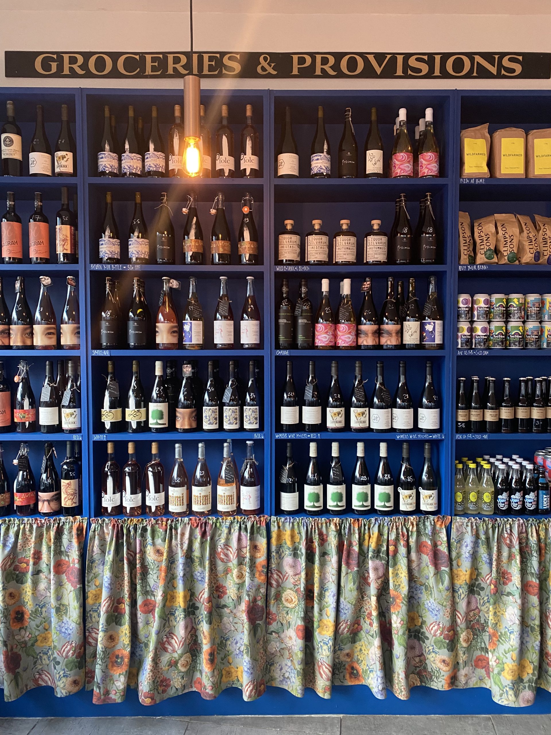 Just up from the towpath on Cambridge Heath Road, the couple now have their first restaurant, Flat Earth. Something of that laidback waterside vibe has transferred to the space with its hanging houseplants, vintage floral curtains and bar counter that’s made from repurposed scaffolding planks.