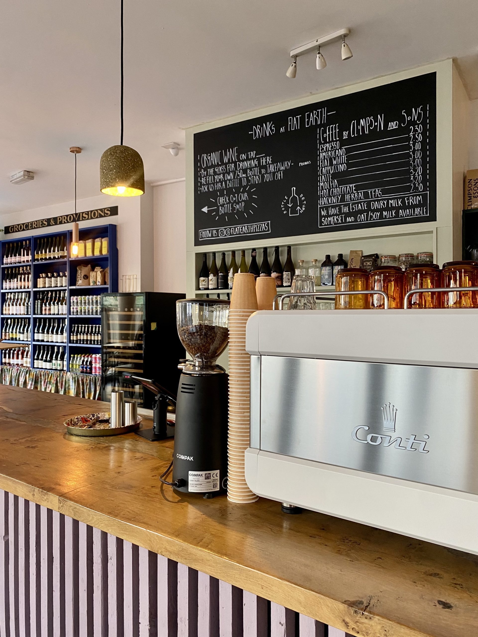 The original idea was to create meat free pizzas that are kind to the planet. In fact sustainability is the focus in all aspects of the business – from the micro-seasonal menu to the wine sold on tap or in reusable bottles. If you like what you’re drinking the ‘bottle return’ scheme means you can buy a reusable bottle to take home too. Suppliers’ have all been vetted for their eco credentials, and they include as many local businesses as possible like Climpson & Sons coffee and Flavour Fred – a professional forager whose finds go into the cocktails.