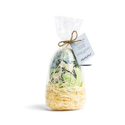 Cotswold lamb Easter egg with a Hugo Guinness illustration of leaping spring lambs, £16 from Daylesford