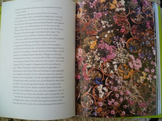 Finnis loved alpines and was particularly good at growing them. These, in 3 inch clay pots, include drabas, dionysias, campanulas and saxifrages.