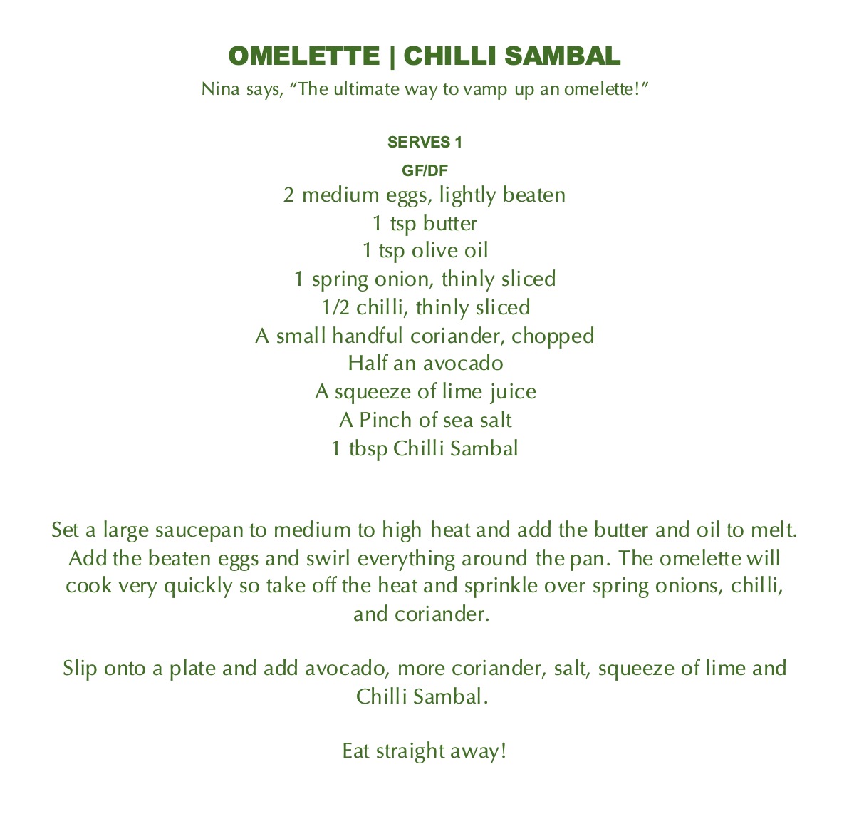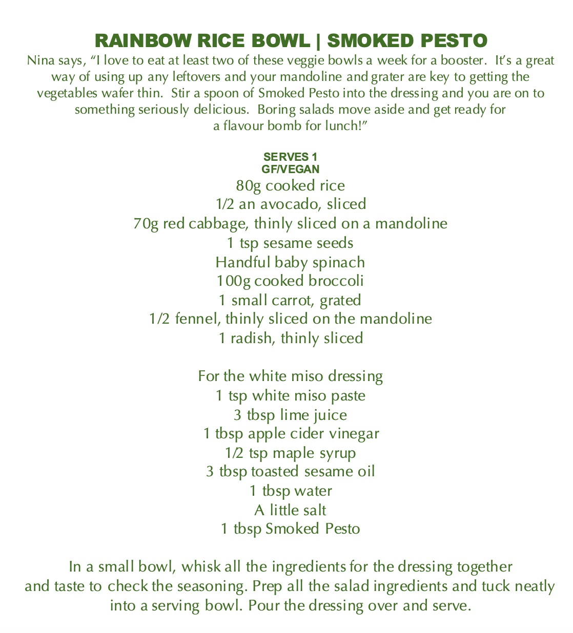 While recipes are not necessary to enjoy these bottled delights, Nina has a few suggestions for those in need of further inspiration. These zingy recipes are taken from her cookbook, Saucy. You can find this, and her new products on Nina’s website.