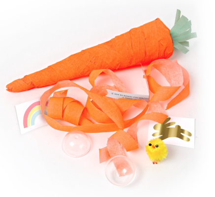 Meri Meri Surprise carrots which contain a yellow chick, a temporary tattoo and a joke, £11 from Scandimini