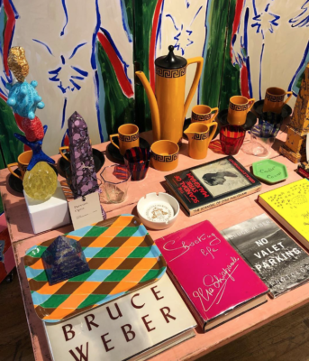 Luke Edward Hall’s Pop-Up corner on the 3rd Floor of Liberty is equally as colourful. (Read our previous interview with Edward Hall on his favourite coffee table books here). Featuring his vivid classical, Romanesque sketches on chairs, prints, cushions and vases, he has also added in his favourite products from within the store and some vintage finds. There are marbled obelisks from Parvum Opus, maker of bespoke desk furnishings, books from specialists Beaux Books, velvet slippers from Stubbs and Wootton and glasses from Campbell Rey. It’s a fascinating, quirky, must-have mix and if you can’t make it down to Liberty, then you can shop a selection online here.