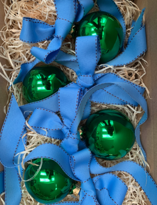 Christmas Baubles with grosgrain ribbon, from £16 for a set of 4 at Matilda Goad
